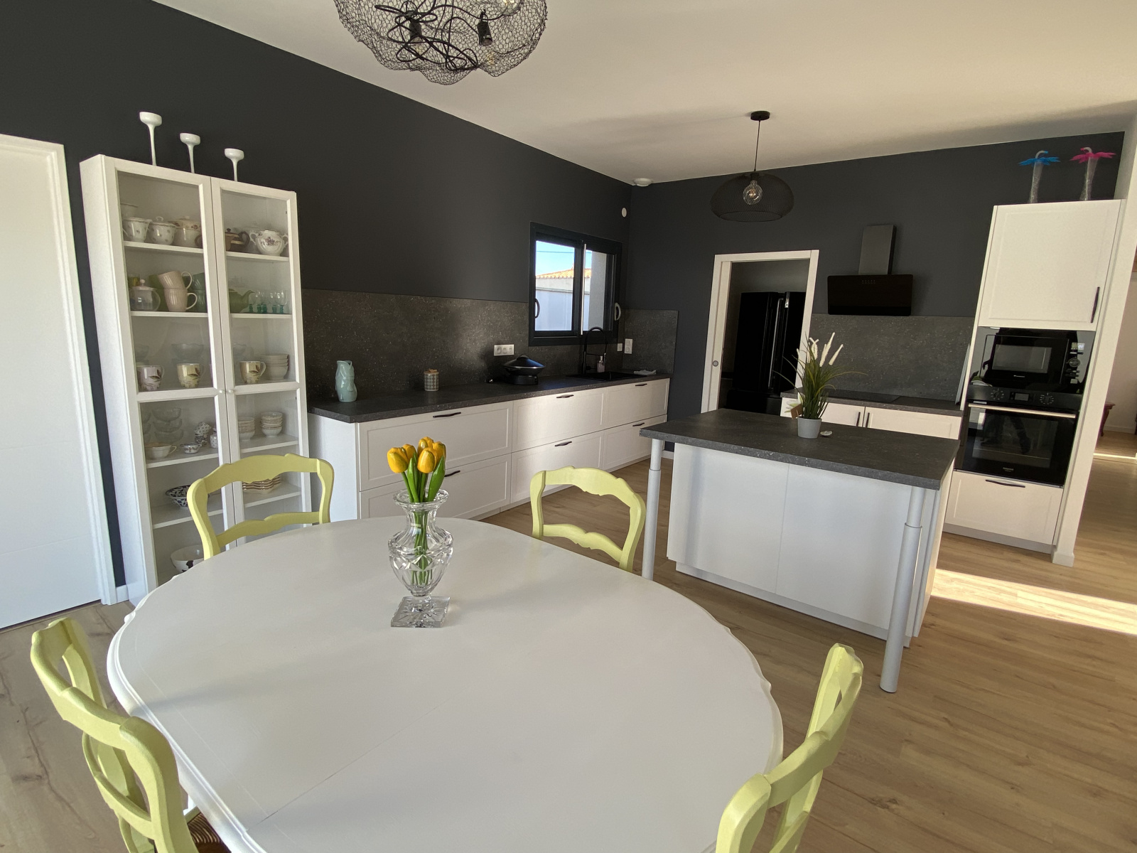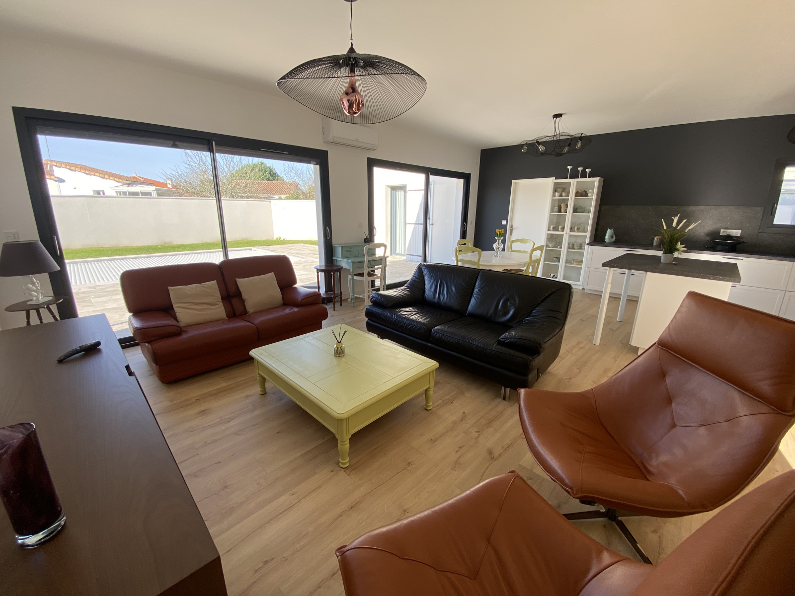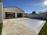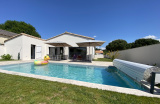 Dans un quartier calme, à proximité des commerces et du port, il ne vous restera qu'à poser vos meubles et vos valises dans cette parfaite villa récente, alliant confort et modernisme. De plain-pied, l'intérieur se compose d'une entrée avec placard de rangement, vaste pièce de vie lumineuse avec cuisine aménagée/équipée donnant sur terrasse, jardin et piscine chauffée exposée sud-ouest, arrière cuisine donnant sur cour fermée, 3 belles chambres avec salle d'eau et wc indépendant, et pour finir suite parentale intimiste avec dressing, salle d'eau et wc privatif. Garage double attenant et grand préau semi fermé.Performante et garantie, son isolation, son système de chauffage réversible, son ballon d'eau chaude thermodynamique et sa construction récente font d'elle une maison idéale. A l'année comme pour les vacances, venez la visiter rapidement.